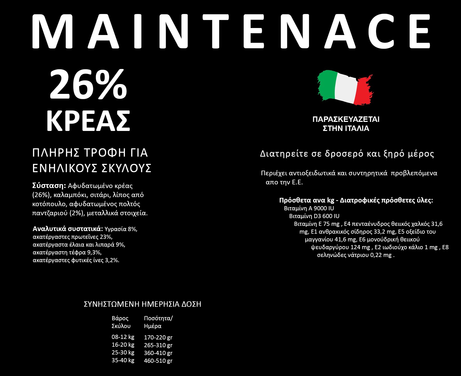 460-510 gr / ημέρα για σκύλους 35-40kg
